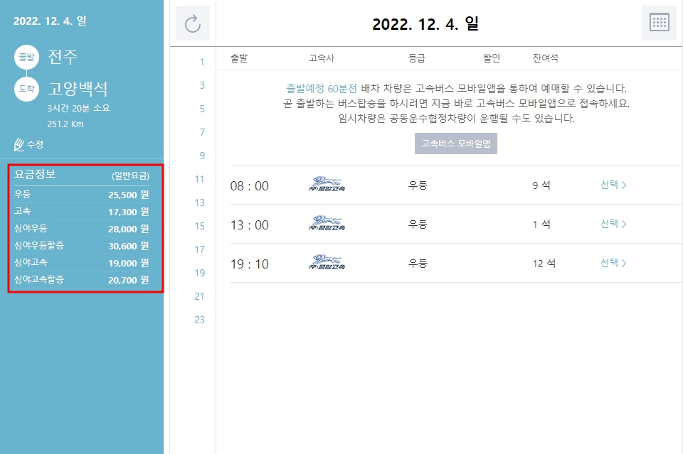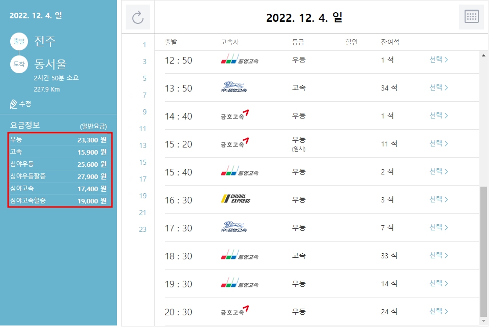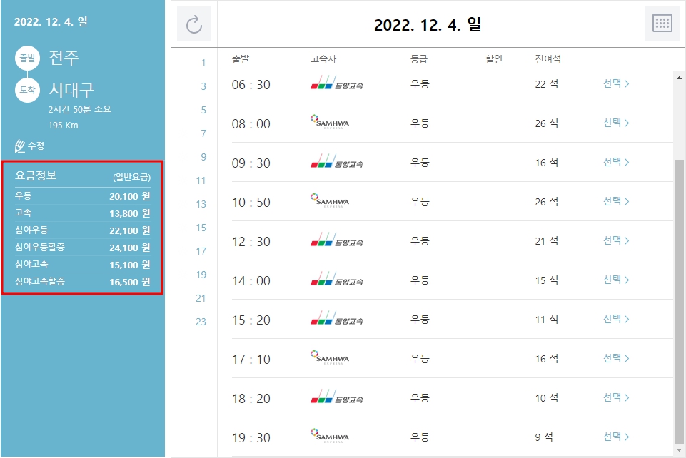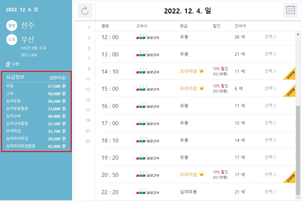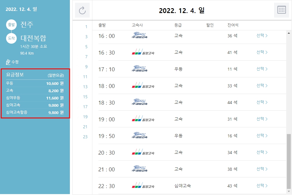 | 07 : 40 | 동양고속 | 프리미엄 |