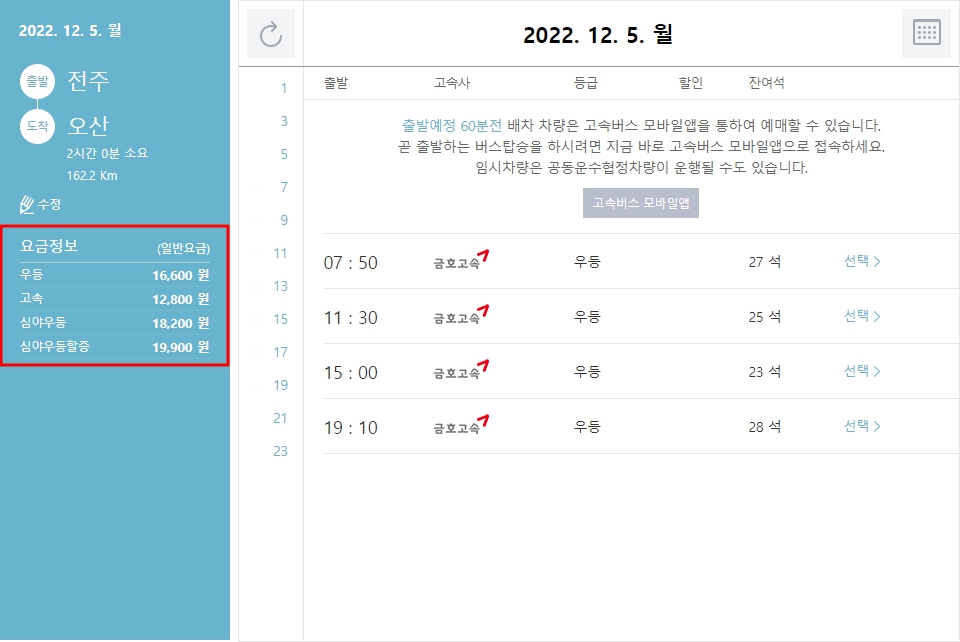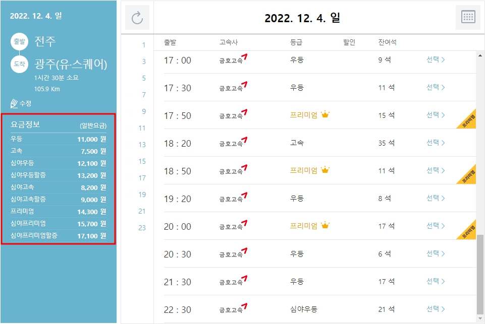 | 12 : 20 | 금호고속 | 프리미엄 |