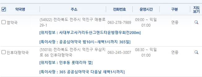 전주 24시간 약국 및 심야 약국 정보