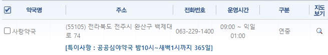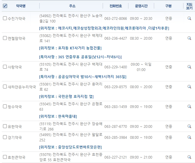 전주시 완산구 휴일 약국 정보 (연중무휴)