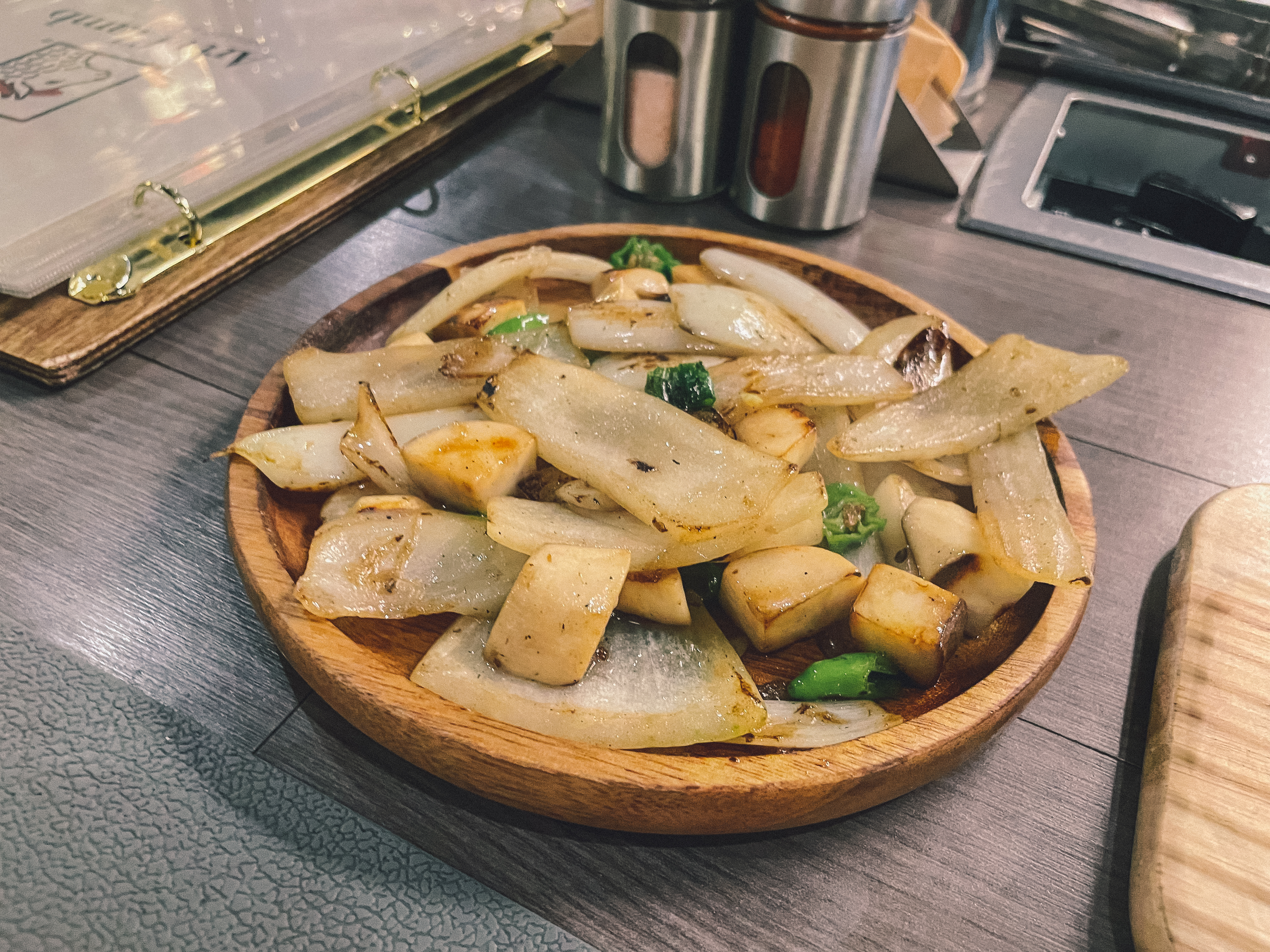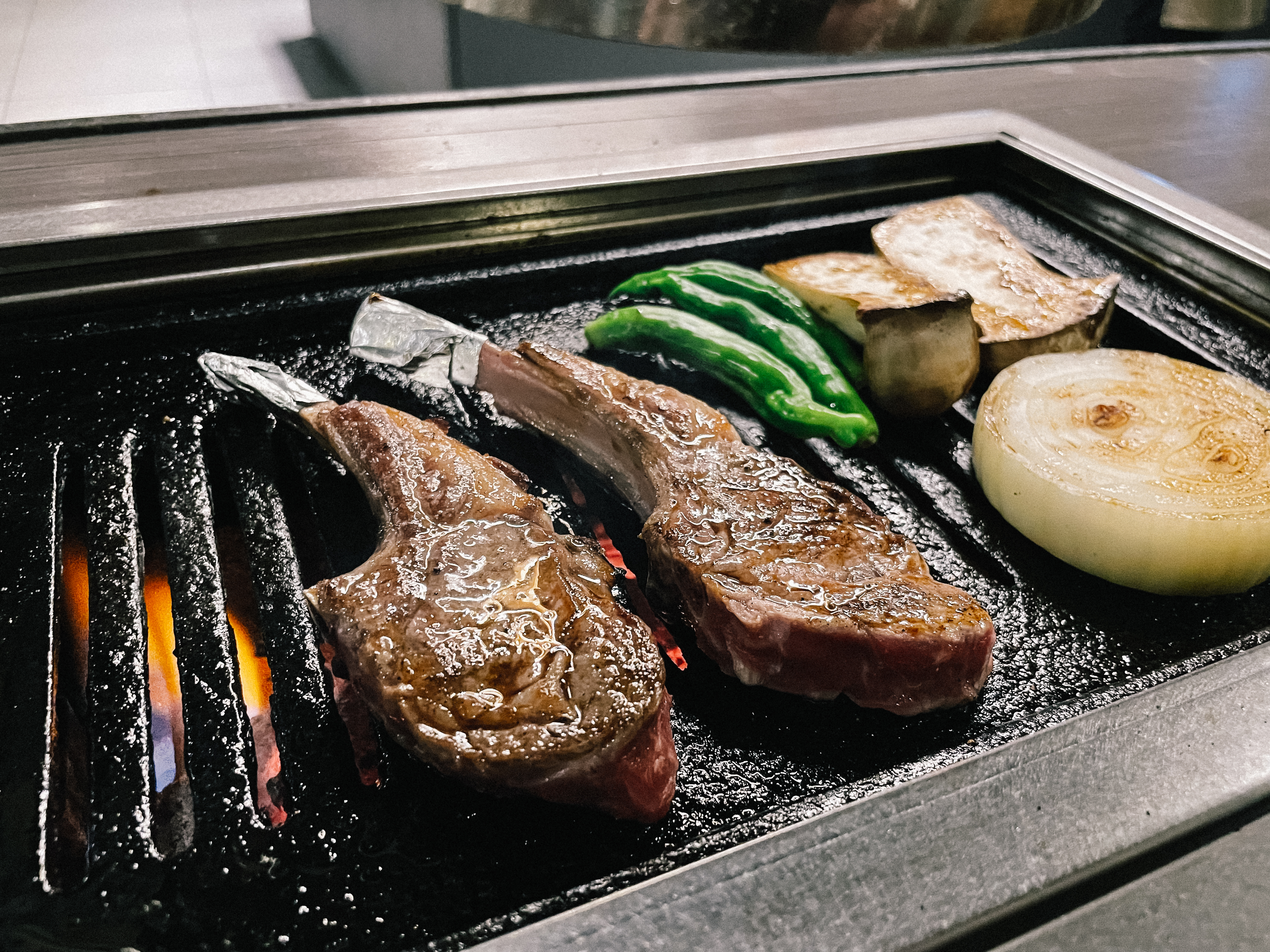 야채들은 직원분이 불판에 구워서 먹기좋게 잘라주셨습니다. 양고기와 함께 곁들여 먹는 버섯 그리고 양파는 정말 일품이었습니다.