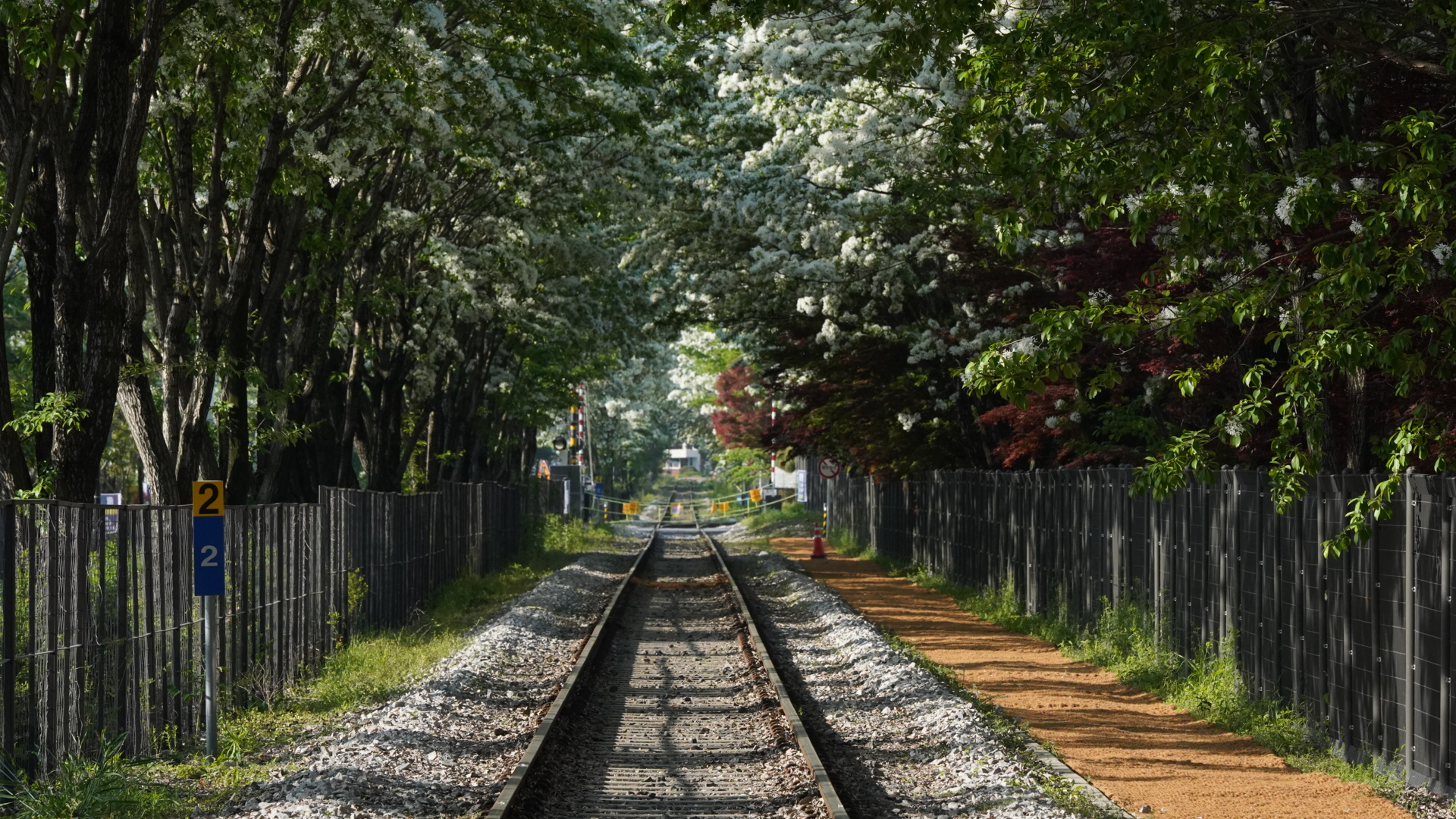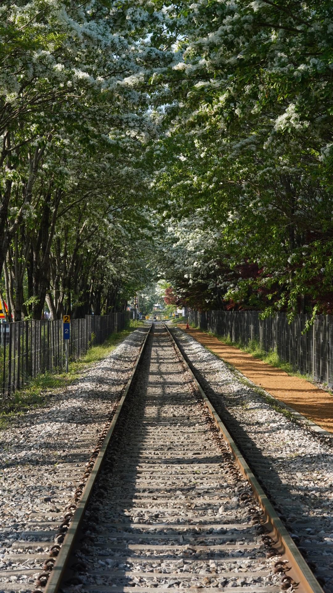 비록 철길에 들어가지는 못하지만 바리게이트 밖에서 촬영은 가능한 부분이라 한적한 분위기 촬영을 원하신다면 오전 8시 내외로 방문하시면 촬영 가능합니다. 저 역시도 하단부분에 소개할 실시간 사진이 오전 8시에 촬영한 사진입니다.
