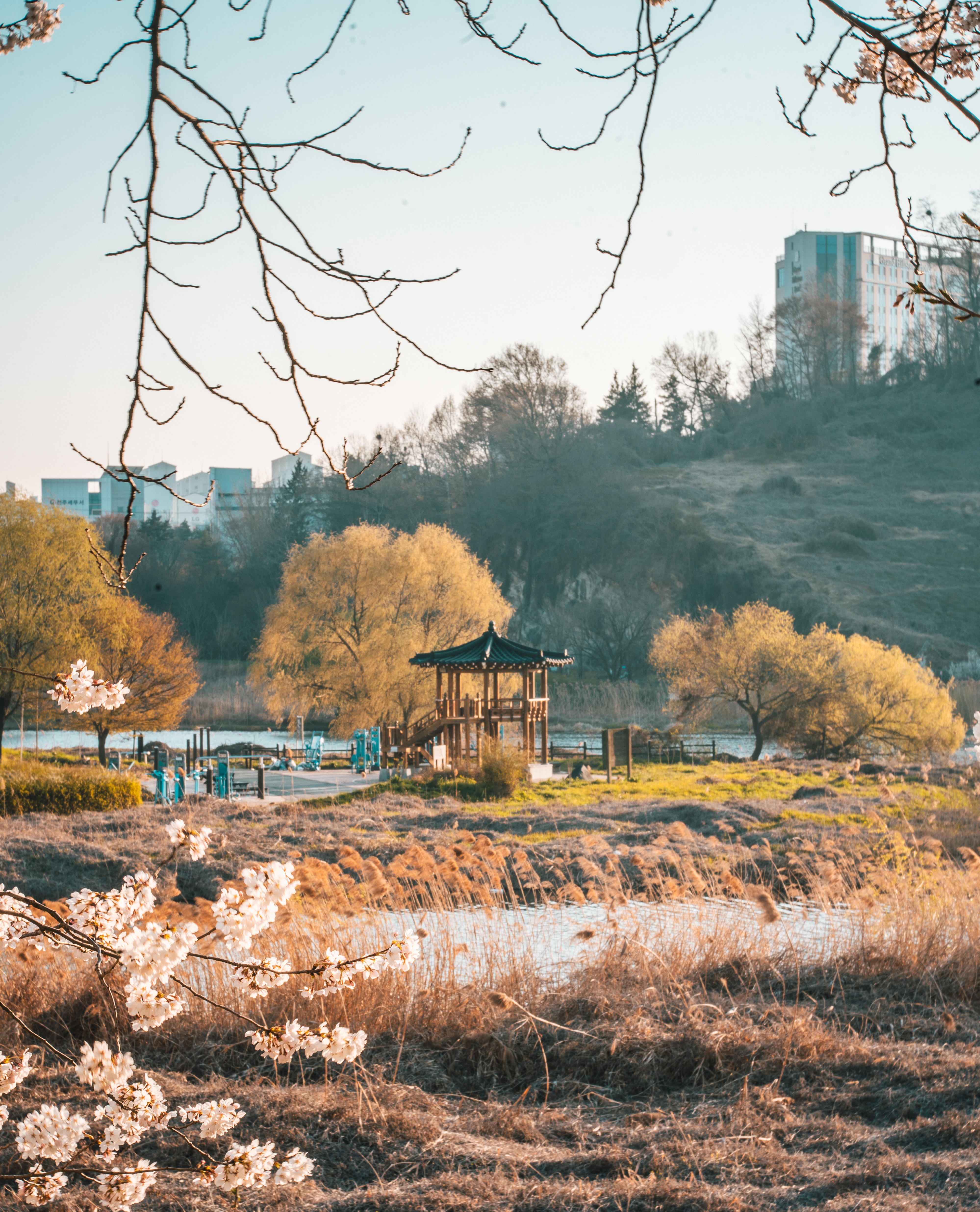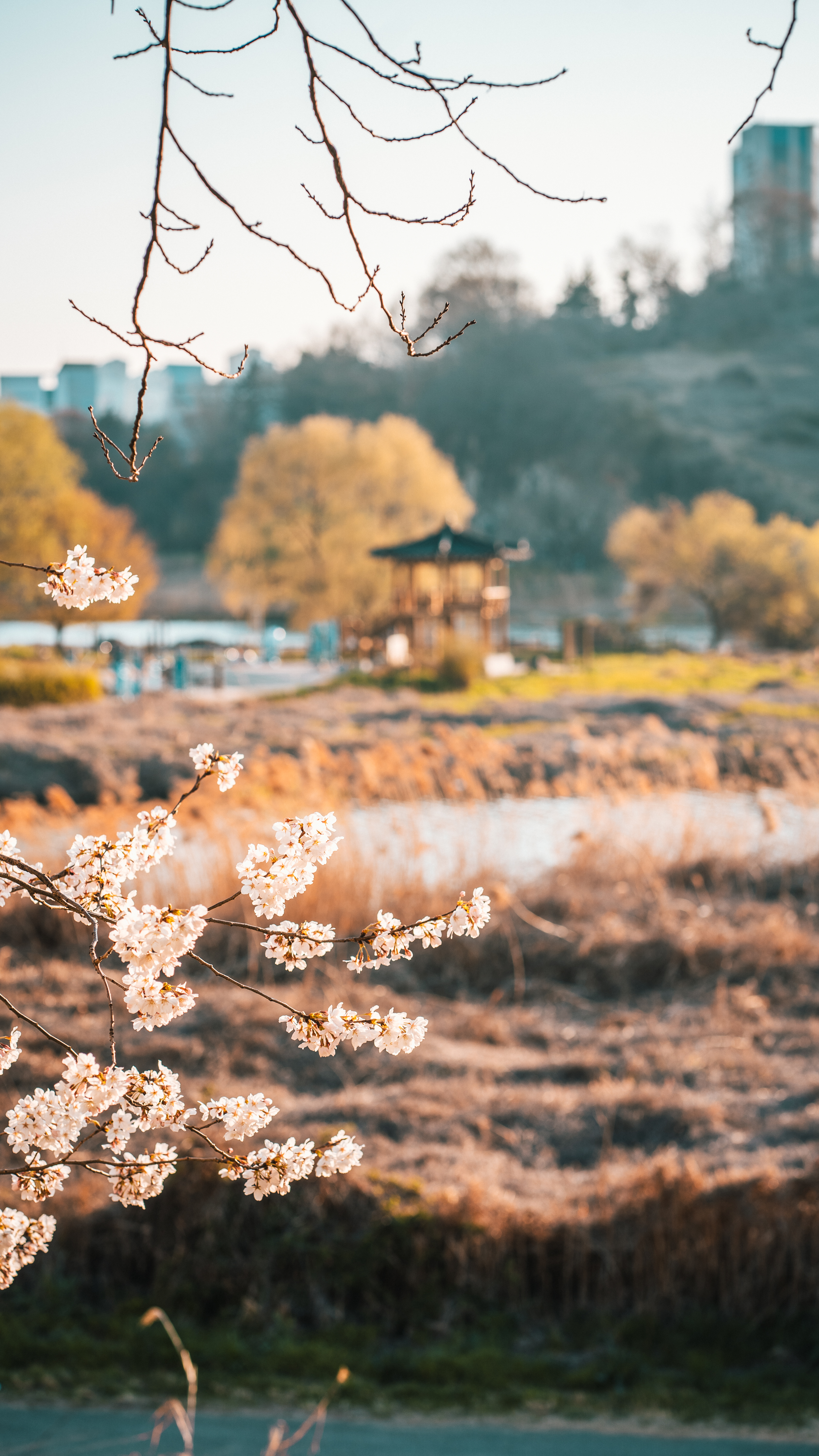 오늘 개인적으로 마음에 들었던 사진 중 하나입니다. 저쪽 건너편에 정자와 벚꽃의 조화가 잘 어울러진 사진인데요. 정말 집 앞 가까운 곳인데. 이렇게 아름다운 곳이었는지는 오늘 처음 느꼈습니다.